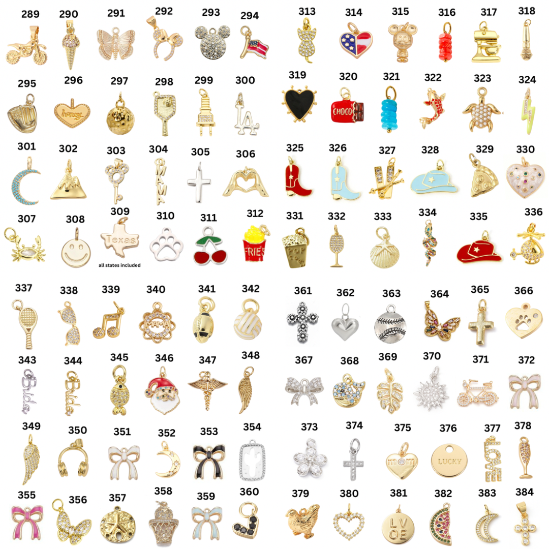 Elevate your style with our Custom Charm Necklace! Choose from a vast selection of over 400 trendy charms to create a one-of-a-kind accessory. With something for everyone, this charming necklace is sure to add a personal touch to any outfit. Express yourself and make a statement today!
